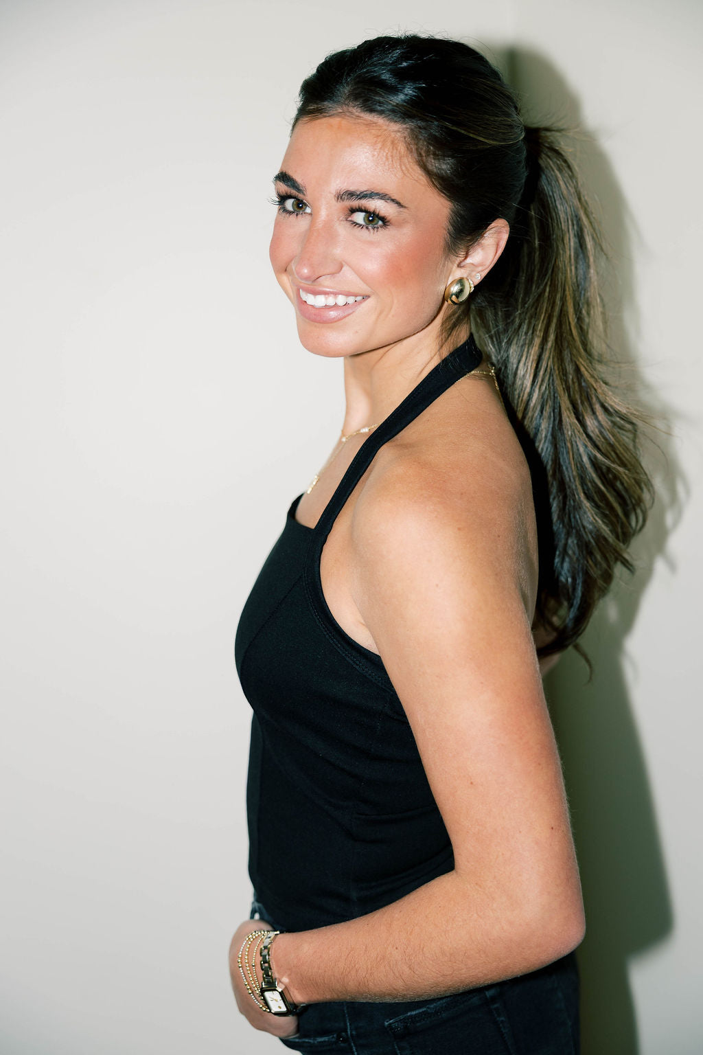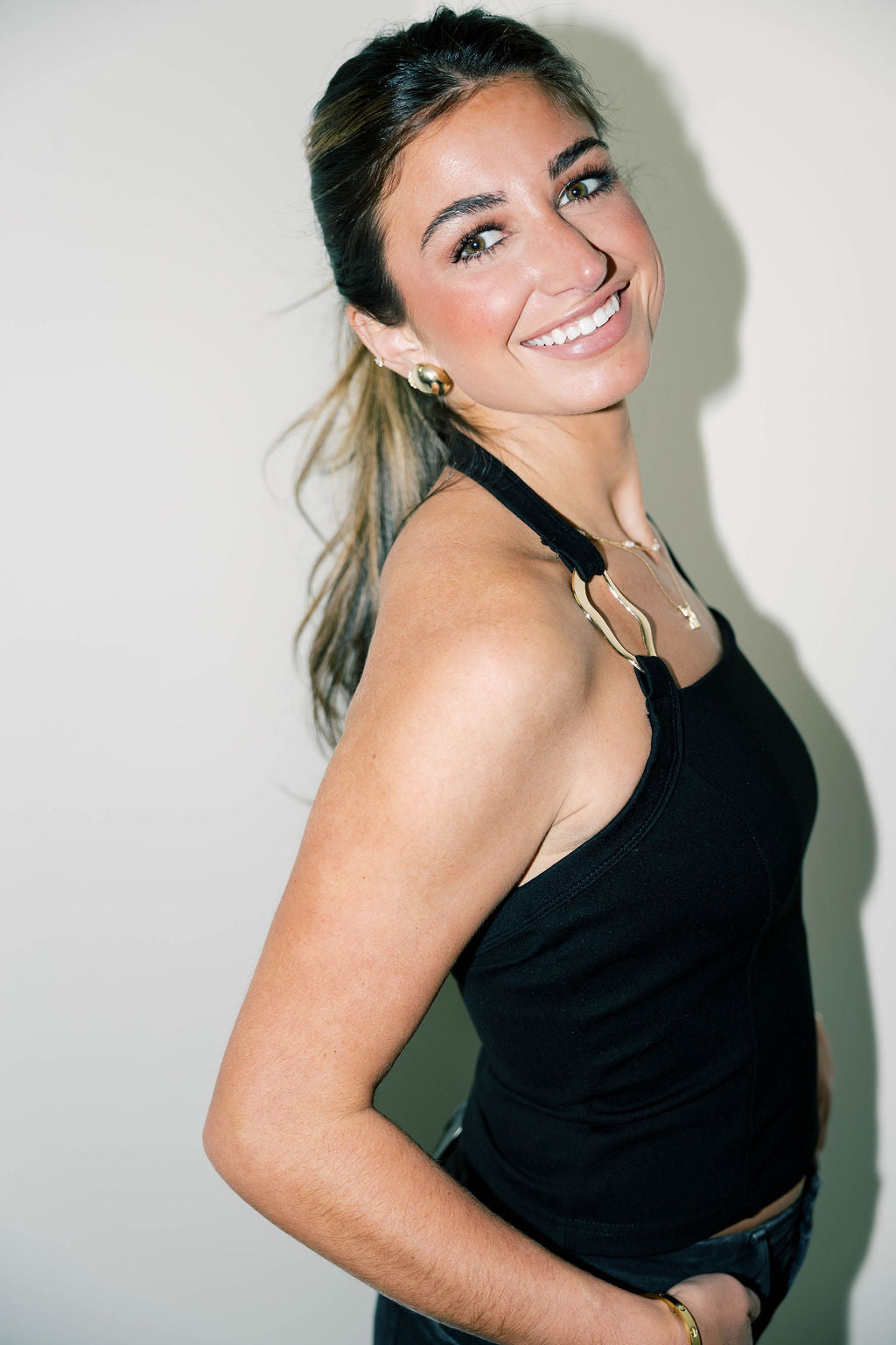 This halter top features a stylish chain link knit design, perfect for adding a trendy edge to your wardrobe. Its unique texture and flattering fit make it an essential piece for effortless, chic looks.