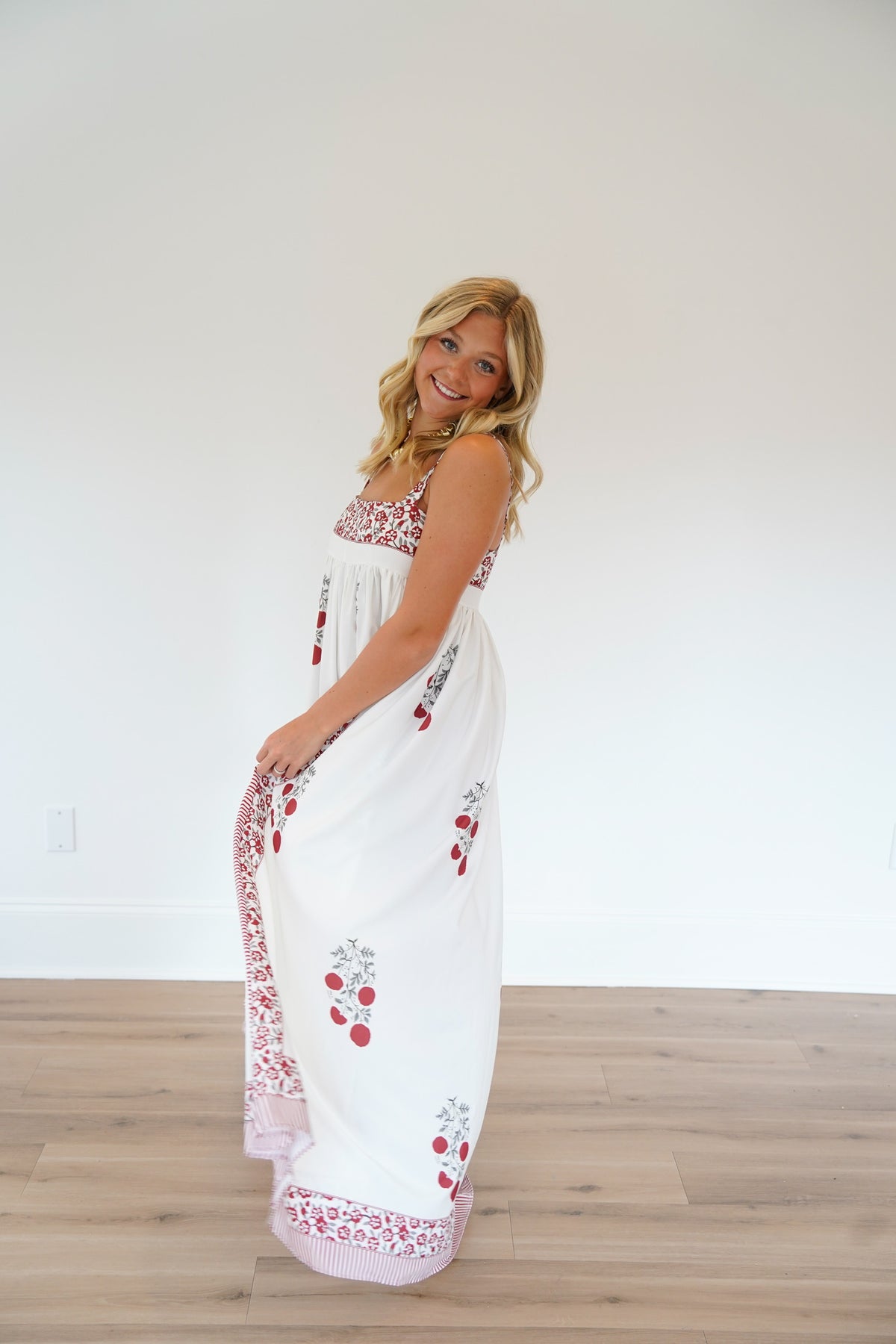 The Resort Violette Floral Maxi Dress features a graceful flare silhouette with delicate straps, offering an elegant and flowing design perfect for so many occasions.