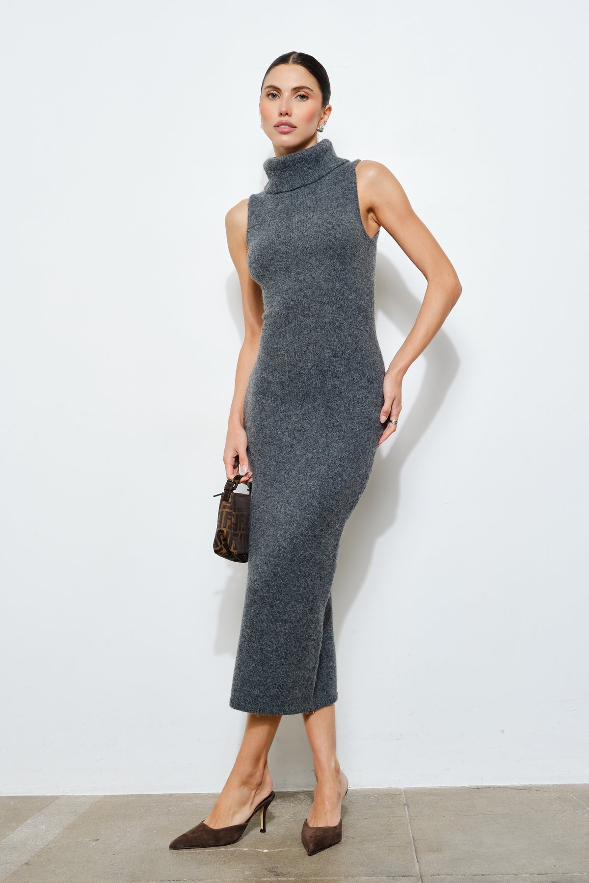 Effortless elegance meets everyday comfort in this sleeveless turtleneck sweater dress. The timeless silhouette flatters every frame while the cozy knit fabric keeps you warm without bulk. Perfect for layering or wearing solo, this versatile piece transitions seamlessly from office to weekend. Pair with tights and boots for a polished look, or dress it down with sneakers for casual sophistication.