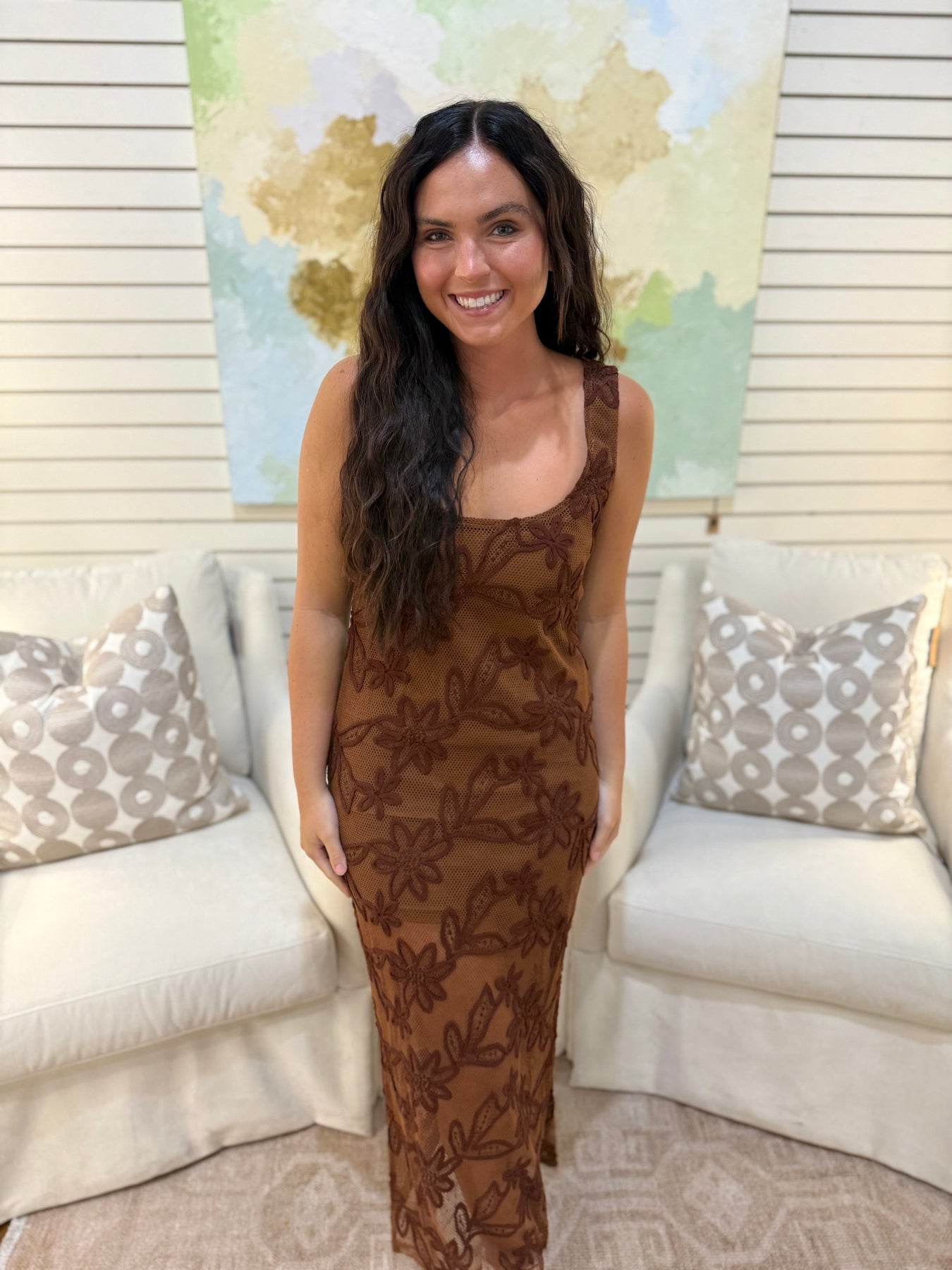 Embrace a laid-back boho vibe with this Crochet Maxi Dress, showcasing