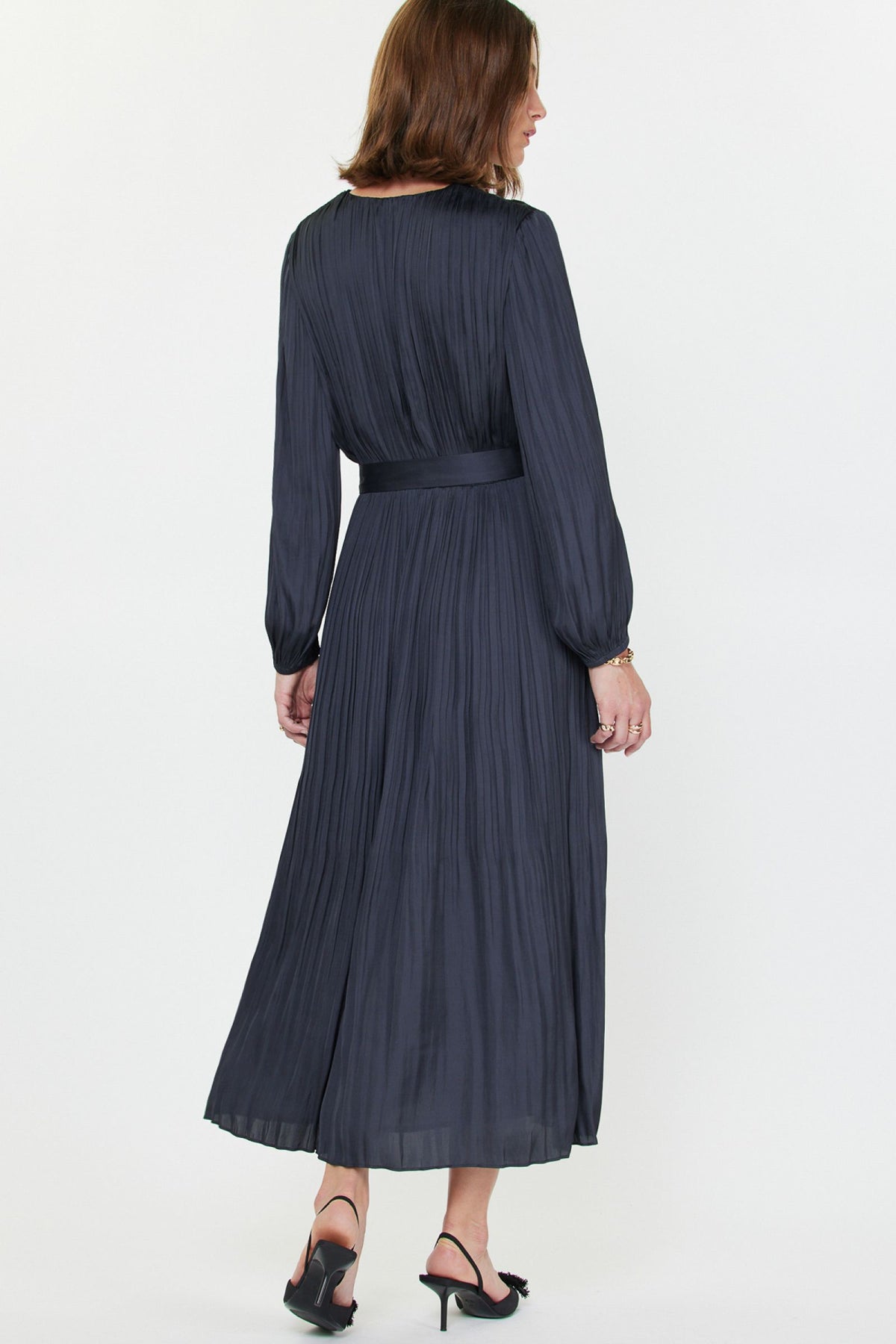 • Featuring a timeless round neckline and long sleeves, this midi-length dress showcases an elegant all-over pleated pattern. The elasticized cuffs add a comfortable fit, making it a stylish and adaptable choice for any occasion.