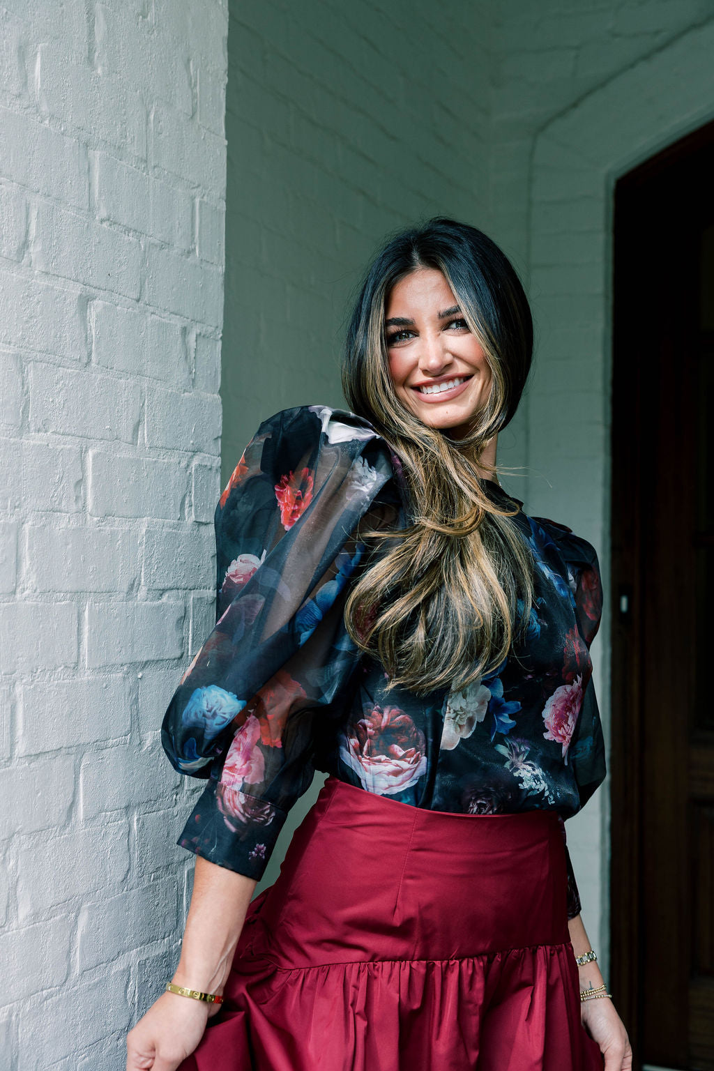 This floral organza blouse with puff sleeves makes a romantic, eye-catching