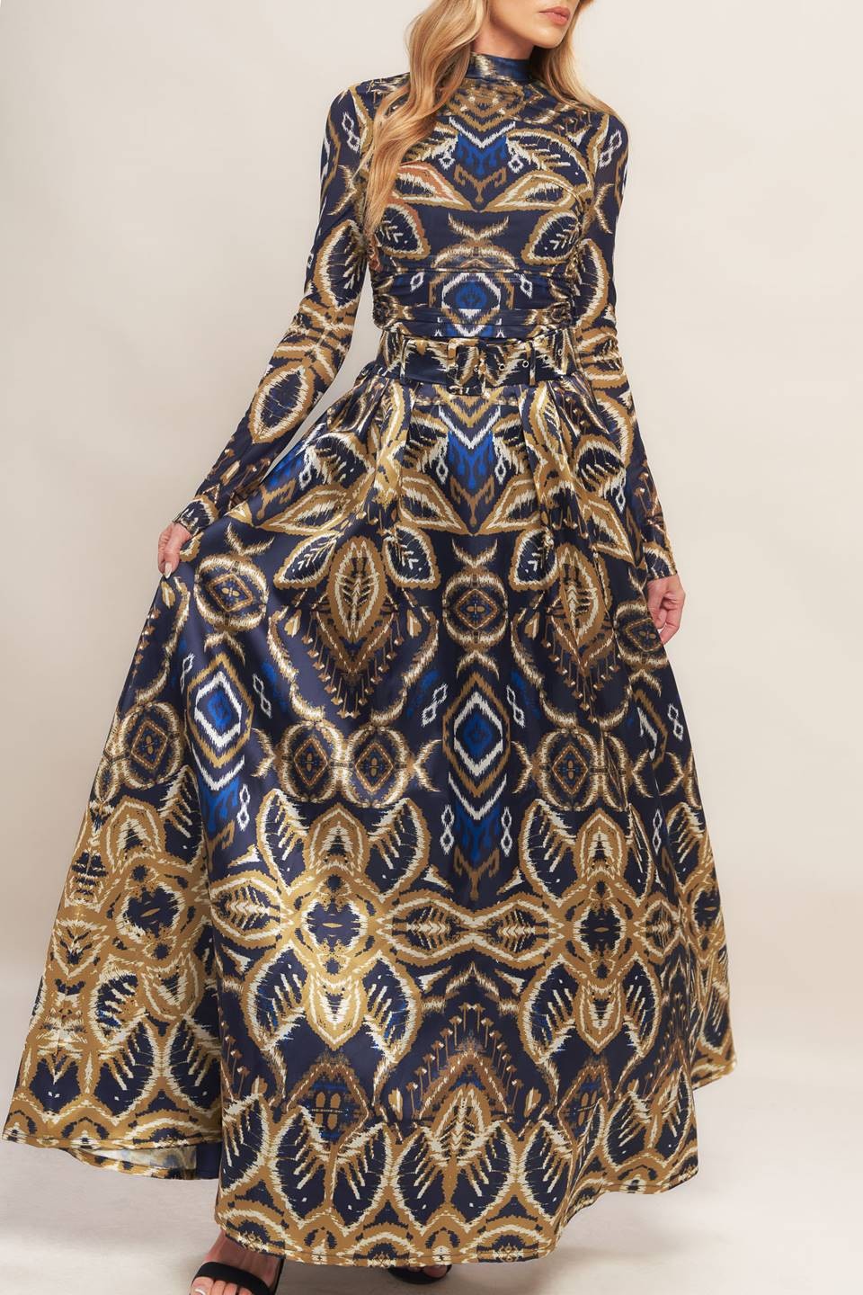 Elevate your wardrobe with this long-sleeve navy mesh top featuring an eye-catching ikat print and a chic mock neck design. Size & Fit - Model is 5'8" And Wearing Size Small - Measurements Taken From Size Small