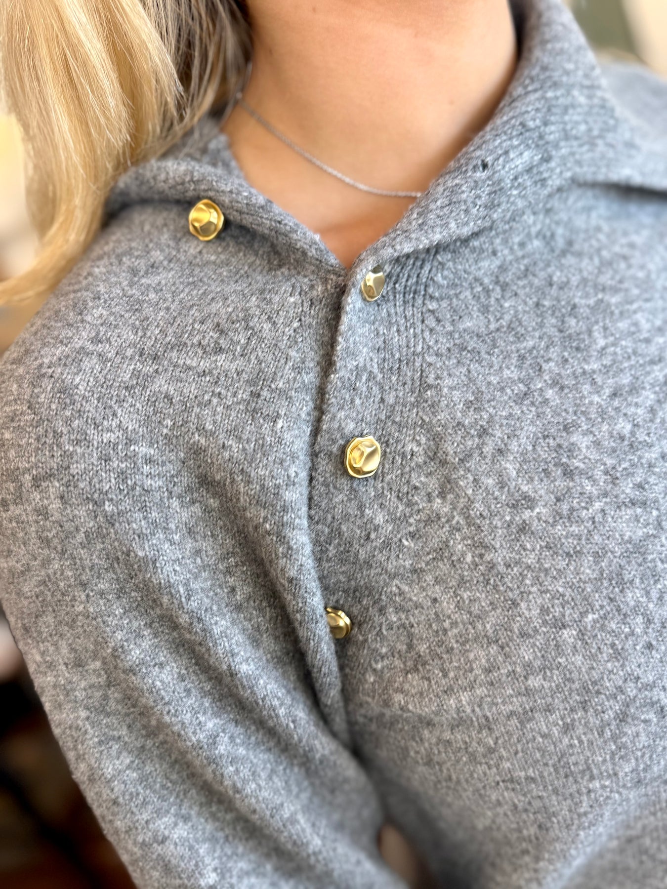 Elevate your wardrobe with this sophisticated long sleeve knitted sweater, featuring an eye-catching asymmetrical neckline adorned with gleaming gold button accents at the shoulder. The unique design detail transforms an everyday essential into a statement piece that effortlessly transitions from office to evening wear. Crafted for comfort and style, this sweater delivers both warmth and contemporary elegance in one versatile layer.