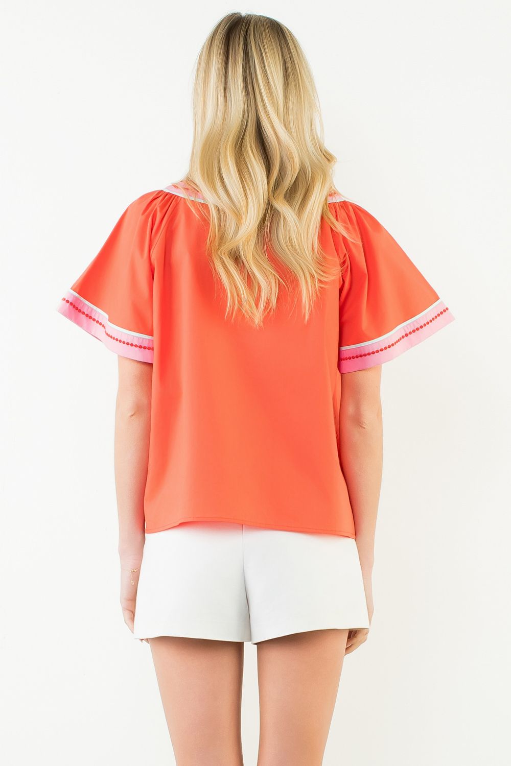 Crafted from pure cotton, this versatile V-neck top features striking contrast trim and generously cut wide sleeves for effortless comfort and contemporary style. The breathable fabric makes it an ideal layering piece or standalone essential for any wardrobe.