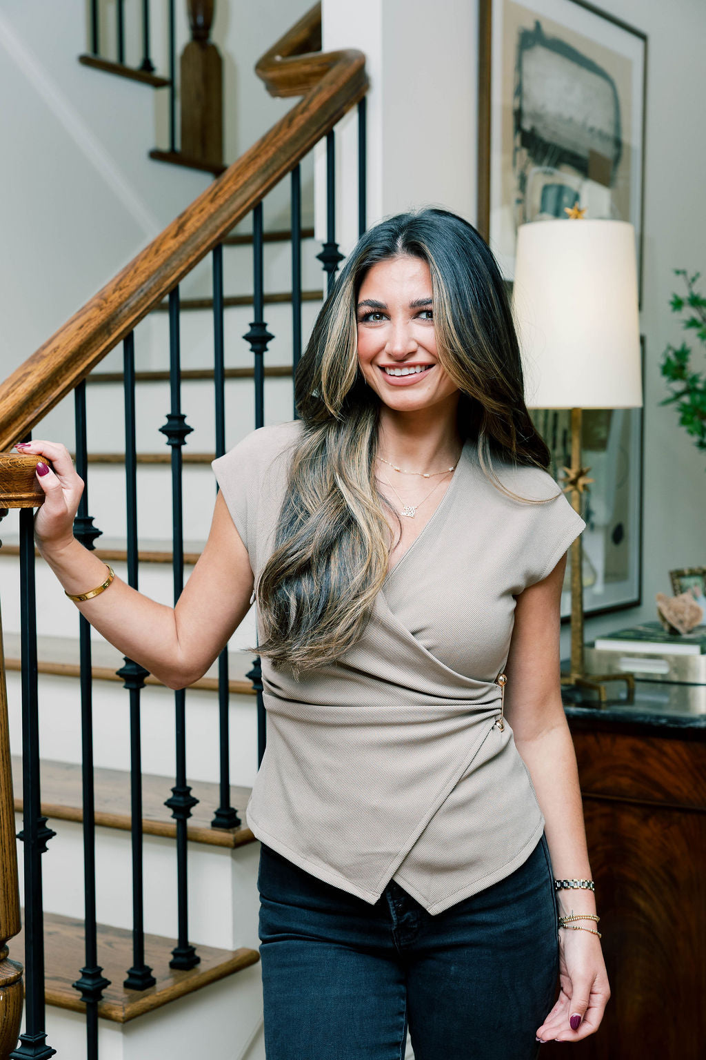 This Surplice V-Neck Top features a flattering side gather highlighted by