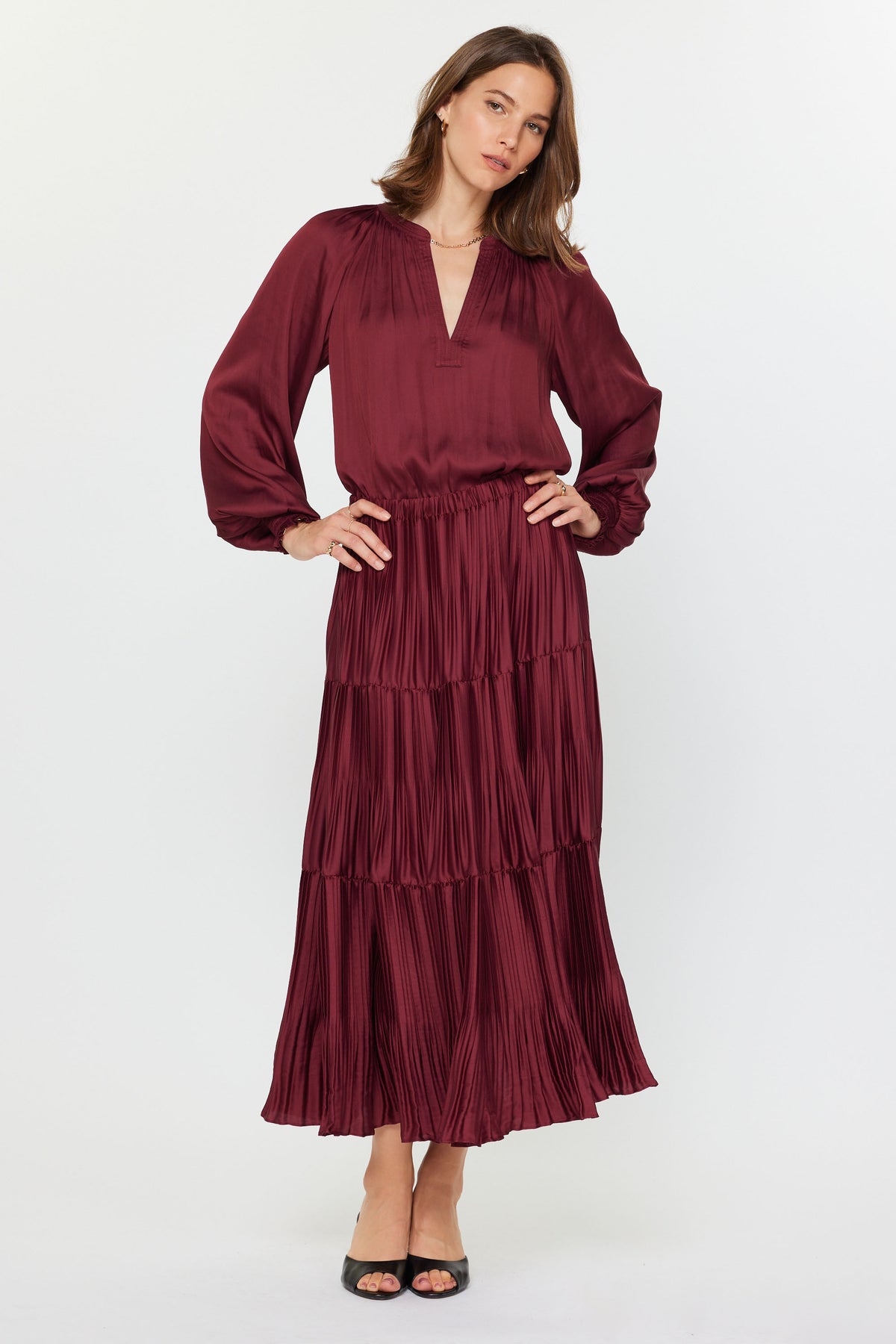 Elevate your wardrobe with this stunning three-tiered maxi skirt, where cascading pleats create movement and dimension with every step. The layered design delivers sophisticated style that transitions seamlessly from day to night, while the flowing silhouette flatters all body types. Perfect for those who refuse to compromise on elegance and want a versatile piece that commands attention.